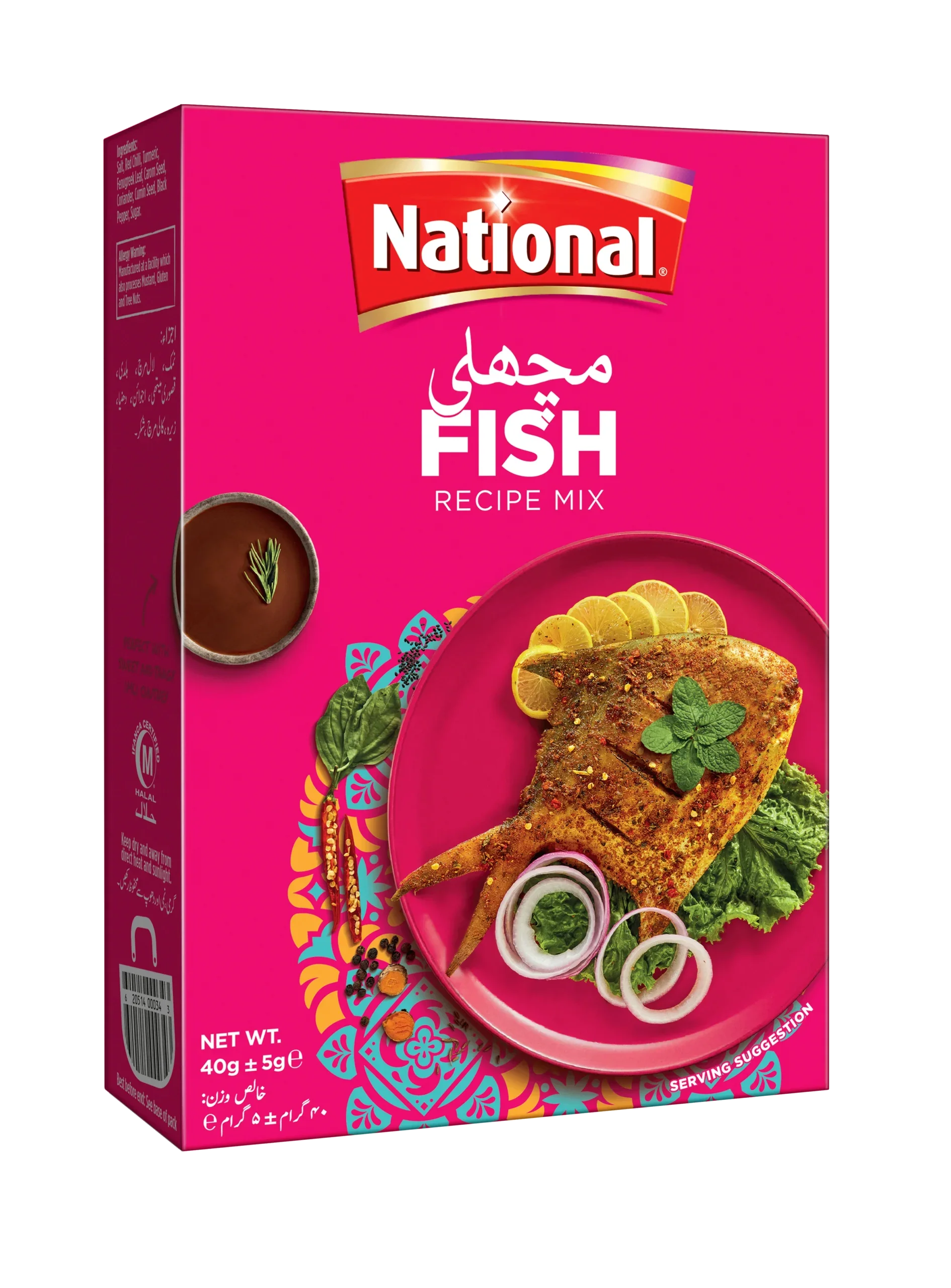 Create your favourite spicy Fish recipe with the help of National Fish Recipe Mix. A blend of flavorful spices and fragrant herbs to make the perfect marination for any kind of fish. Helps in tenderizing and absorbing flavour. Perfect for fried, grilled and roasted fish.